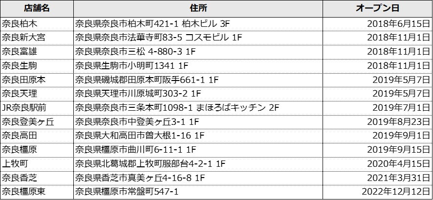 ●奈良県内のエニタイムフィットネス店舗 ※オープン日順
