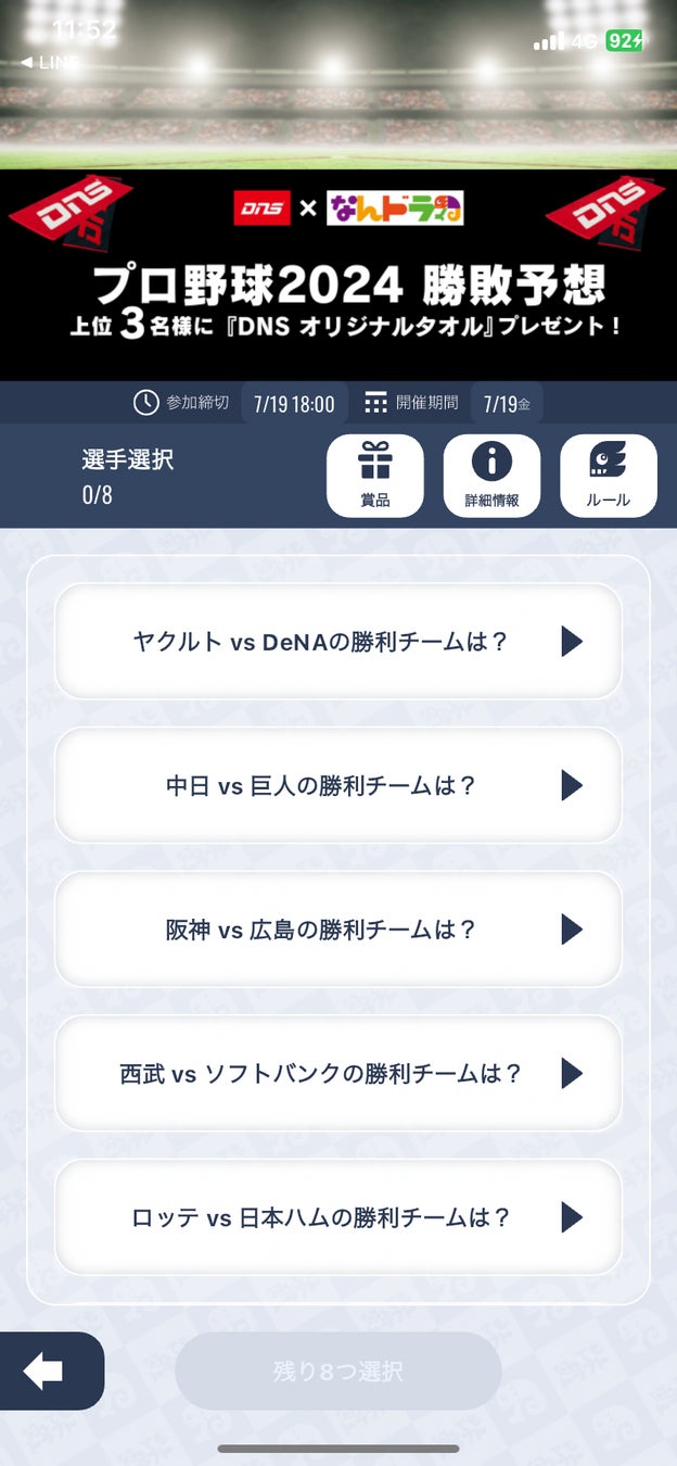 ・予想とDNSクイズ/アンケートを全て答え「ドラフトに参加」をクリック(参加費無料)