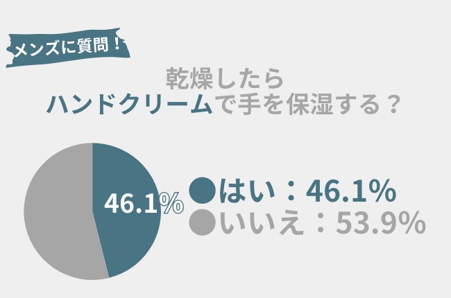 調査の結果、46.1%の男性が「手が乾燥したらハンドクリームで保湿する」ことがわかりました。