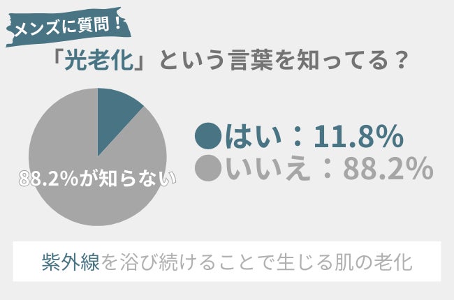 調査の結果、88.2%と大部分の男性が「光老化」という言葉を知らないことが明らかになりました。