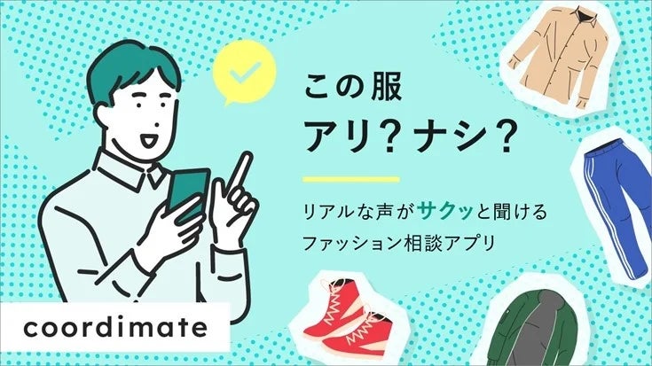 coordimate は「この服アリ?ナシ?」のリアルな声がサクッと聞けちゃうファッション相談アプリです。相談者は、自身のファッションを「coordimate」に投稿すると、数分でファッション好きの一般男女「mate(メイト)」から「アリナシ」のリアクションやアドバイスといったフィードバックを最短で30秒でもらえます。スポーツなどには「練習する場所」=「失敗できる場所」があるにも関わらず、服装に関しては毎回ぶっつけ本番。そこに違和感を覚えた創業者の原体験からcoordimateは生まれました。服装についても事前に失敗できる場所をつくることで“安心して挑戦する”ことができ、本番に自信を持って臨めるようになる。そんな世界の創出をめざします。