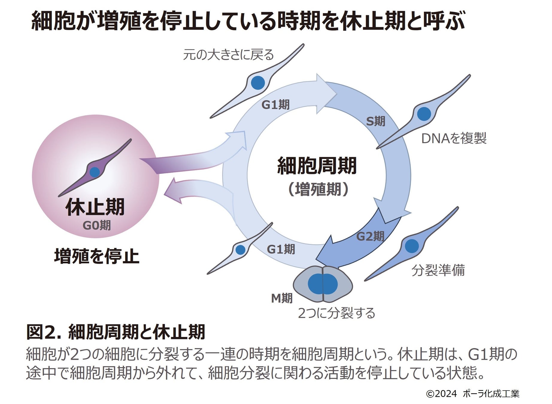 ポーラ・オルビスグループの研究・開発・生産を担うポーラ化成工業株式会社(本社:神奈川県横浜市、社長:片桐崇行)は、ヒト真皮由来の線維芽細胞の細胞周期に加えて休止期にも着目した研究を独自に進め、以下を発見しました。
