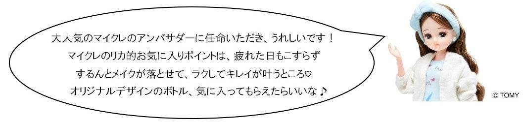 デザインのイラストは、ビビットな色使いやおしゃれな女性のイラストが人気のイラストレーター「Kamin」さんの描き起こしです。それぞれのボトルに3種類のイラストと、外箱の内側にも「リカちゃん」のクローゼットがそれぞれ描かれています。「リカちゃん」のイラストは外箱を開けるまで分からないため、箱を開ける楽しみや、一日の終わりにホッとするリカちゃんからのメッセージが反転したローマ字で入っており、鏡越しに見ると読めるなど、エンターテインメント性のある楽しいデザインになっています。また、マイルドクレンジング オイルシリーズをご購入いただくと、抽選で1000人にオリジナルの「すっぴん♡マイクレ リカちゃん」が当たるキャンペーンを実施します。 ※詳細は8月から順次売り場やブランドサイトで発表