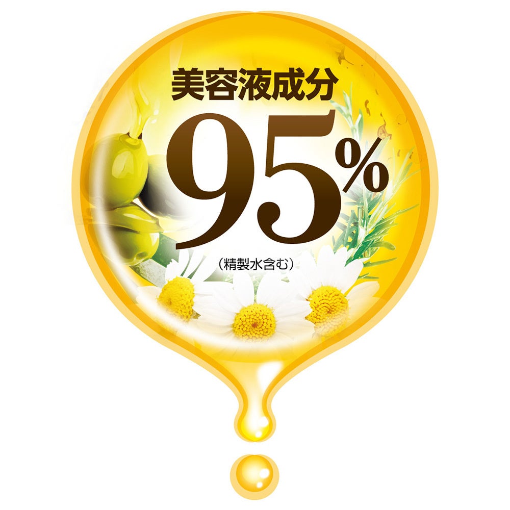 【高保湿美容液成分】ヒアルロン酸Na、オリーブ果実油、ローズマリー葉エキス、カミツレ花エキス(すべて保湿成分)