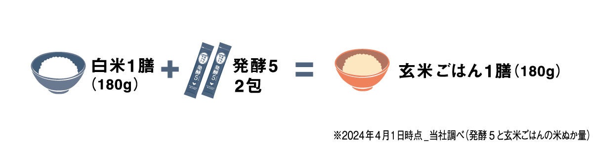 発酵5(2包)で玄米ごはん1膳分(180g)の米ぬか量が手軽に摂れます。