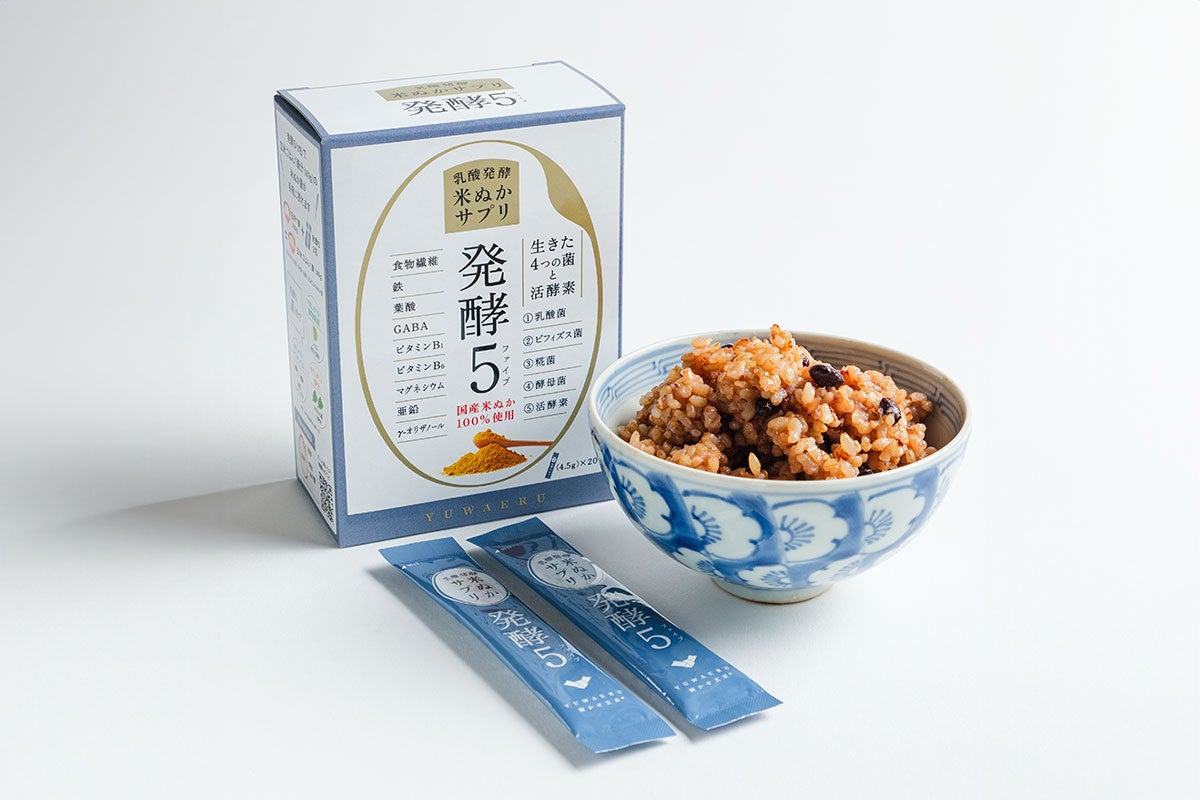 蔵前の行列店「YUWAERU本店」の運営、「寝かせ玄米®ごはんパック」(累計1,600万食販売)の製造を行う株式会社結わえる(本社:東京都千代田区、代表取締役社長:荻野 芳隆)は、米ぬかサプリ「発酵5」を2024年7月17日(水)より、YUWAERU公式オンラインショップ(https://www.nekase-genmai.com/)、他ECサイト、取扱販売店にてリニューアル発売いたします。