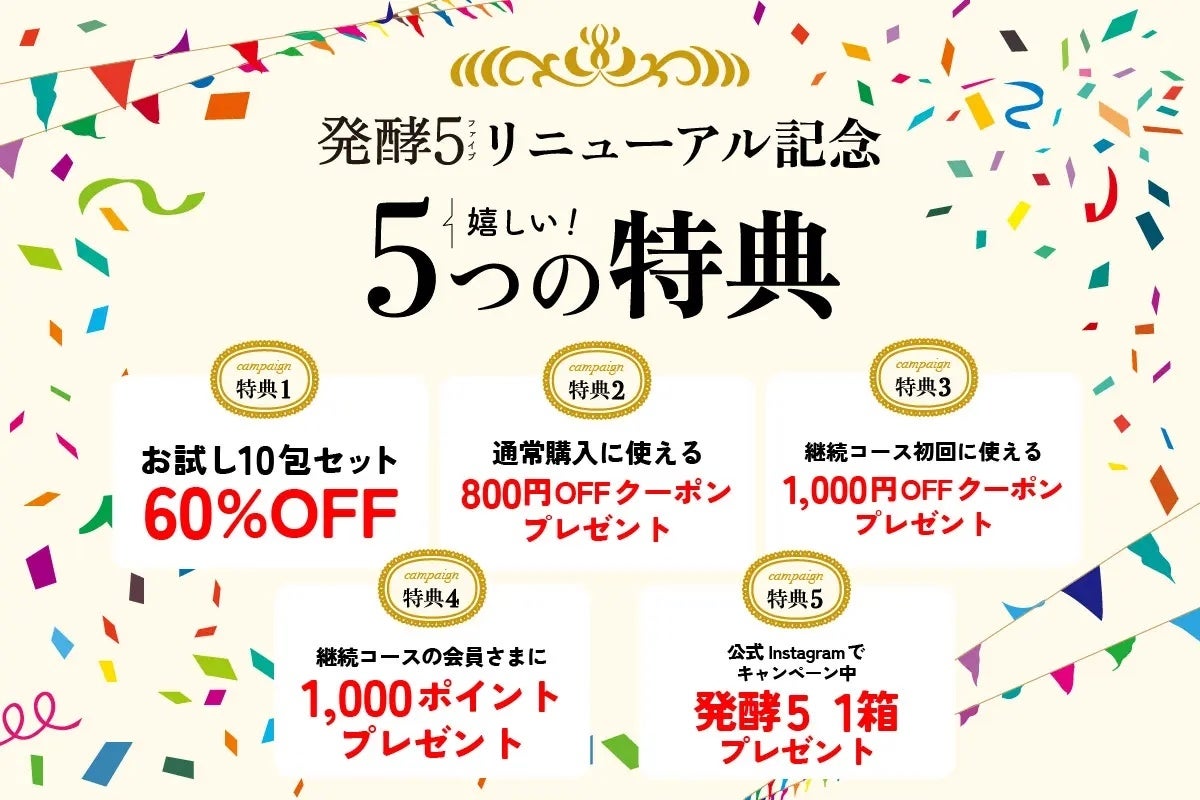 ②発酵5の単品購入に使える、800円OFFクーポンプレゼント!