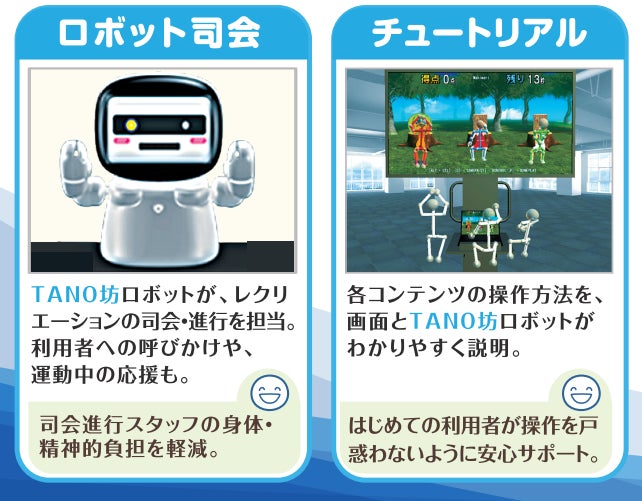 最新版TANOで、コミュニケーションロボットを活用し、測定・運動・レクリエーションの介護業務支援から他施設間対戦による新たなコミュニティ形成の可能性などをご紹介します。