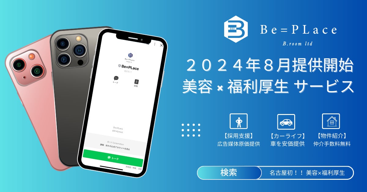 肌質改善サロン「PERSONAL BEAUTY」等を運営する株式会社B.room(名古屋市中区金山、代表取締役:高瀬 大志、田口 潤哉)は、美容サロンの施術が【無料】になる名古屋初の福利厚生サービス『Be=PLace』を法人企業様向けに2024年8月より提供開始予定!