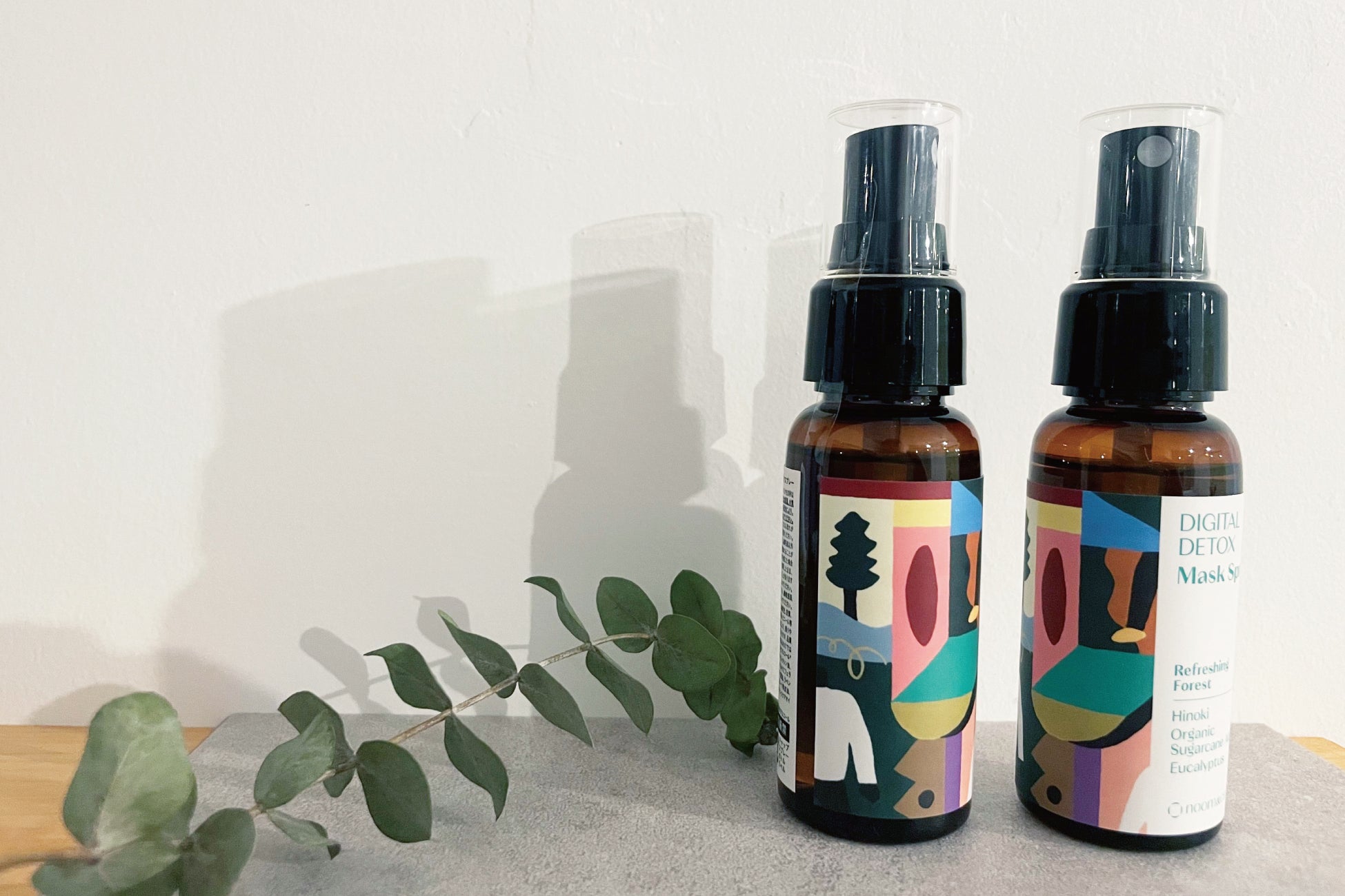 ストレスや睡眠において研究された香り成分配合。いつでもどこでも森林浴体験を!国産オーガニックサトウキビアルコール80%高濃度配合の「森林浴マスクスプレー」。