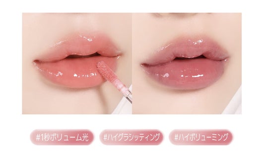 透明感のあるカラーコーティングとプランピングなしでもふっくらボリューム感たっぷりのガラス玉のような輝きリップが完成。