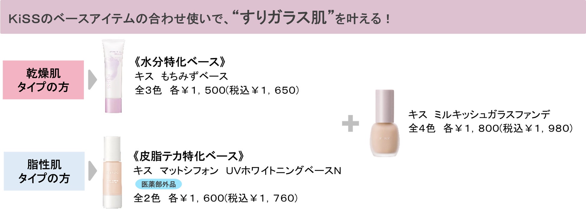◇ベースメイクが吸い付くように肌に密着するキス独自の『もちみずテクスチャクリーム』。