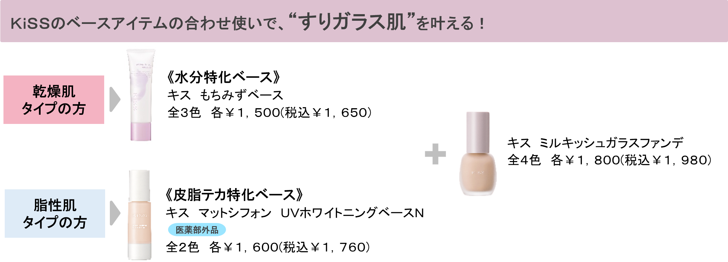◇ベースメイクが吸い付くように肌に密着するキス独自の『もちみずテクスチャクリーム』。