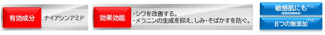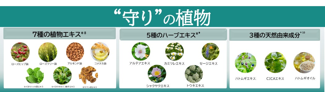*1メラニンの生成を抑え、しみ・そばかすを防ぐ *2超微細ラメラエマルション技術で処理したパルミチン酸レチノール(油脂成分)*3ハリを与えることで弾力のある肌に見える印象 *4超微細ラメラエマルション技術製法による *5角質層まで *6当社内における独自原料 *7年齢に応じたケア *8ローズヒップ油、ローズマリー油、アルモンド油、オレイン酸フィトステリル(油脂成分)、セイヨウハッカエキス、セイヨウオオバコ種子エキス、オウゴンエキス(保湿成分) *9アルテアエキス、ローマカミツレエキス、セージエキス、シャクヤクエキス、トウキエキス(1)(保湿成分)*10ヨクイニンエキス、ツボクサエキス(保湿成分)、ハトムギ油(油脂成分)*11全ての方に皮膚刺激が起こらないということではありません *12無香料、合成着色料フリー、無鉱物油、パラベンフリー、アルコールフリー、石油系界面活性剤フリー、シリコンフリー、タルクフリー *13うるおいを与えて、乾燥により目立った毛穴を目立たなくすること *14超微細ラメラエマルション技術で処理した3-O-エチルアスコルビン酸(保湿成分)