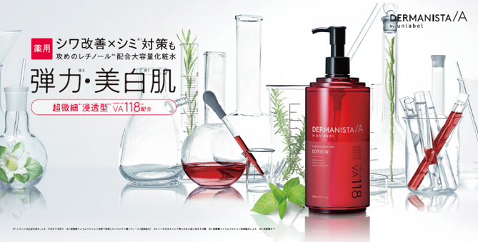 JPSLAB株式会社は、人気のブランド「アンレーベル」のスキンケアラインから、新時代の大人の肌トラブルにアプローチする”ダーマ二スタ”より、ビタミンVCに続き、シワ改善、シミ*¹対策にも対応する攻めのレチノール*²配合の大容量薬用化粧水を発売致します。