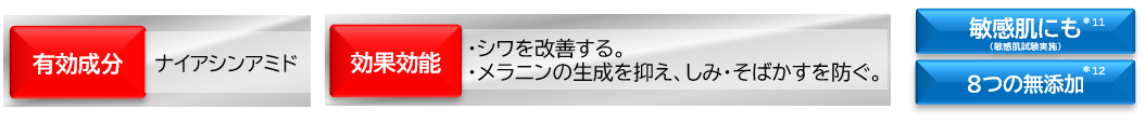 毛穴*¹³、シミ*¹対策も同時にアプローチ。にきび・肌荒れを予防し、健やかな肌へ導きます。