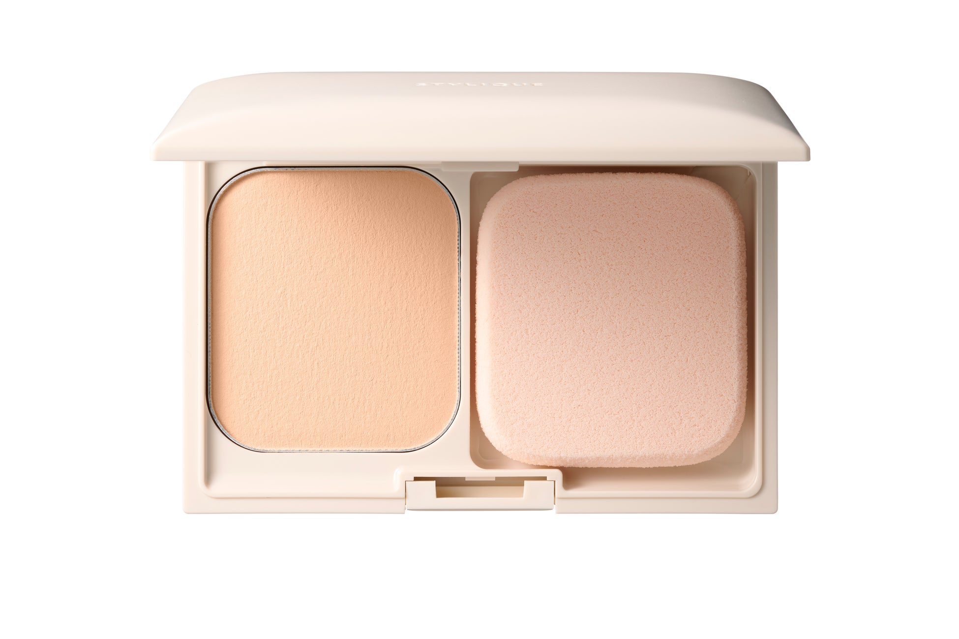 空気を抱え込んだ美容保湿液ムースベースの「スタイリーク パウダー ファンデーション」は、軽く取れ薄くつくのに高カバー。光を多方向に散乱させるソフトフォーカス効果を持つため、さらさらと肌に薄く肌に伸ばしても、シミ・くすみ・くま・毛穴の悩みをきれいにカバーして、すりガラスのような肌の質感が作れます。カバー力があるのにナチュラルに見えるフォギーマットな肌は、まるで肌そのものが美しいと思わせる仕上がり。これは配合成分だけで実現するものではなく、ベースがムース状で空気を抱え込んでいるからこそ実現しているもの。まさに空気を味方に空気感を自在に操えるファンデーションと言えます。色ムラや凹凸さえもなかったことにできるため、正面だけでなく、横顔さえも美しく見せることができます。また、軽く取れてうす付きなので、重ねても粉っぽさがありません。朝のベースメイクだけではなく、ファンデーションはクリームタイプやリキッドタイプを好まれる人の化粧直しアイテムとしても使用できます。