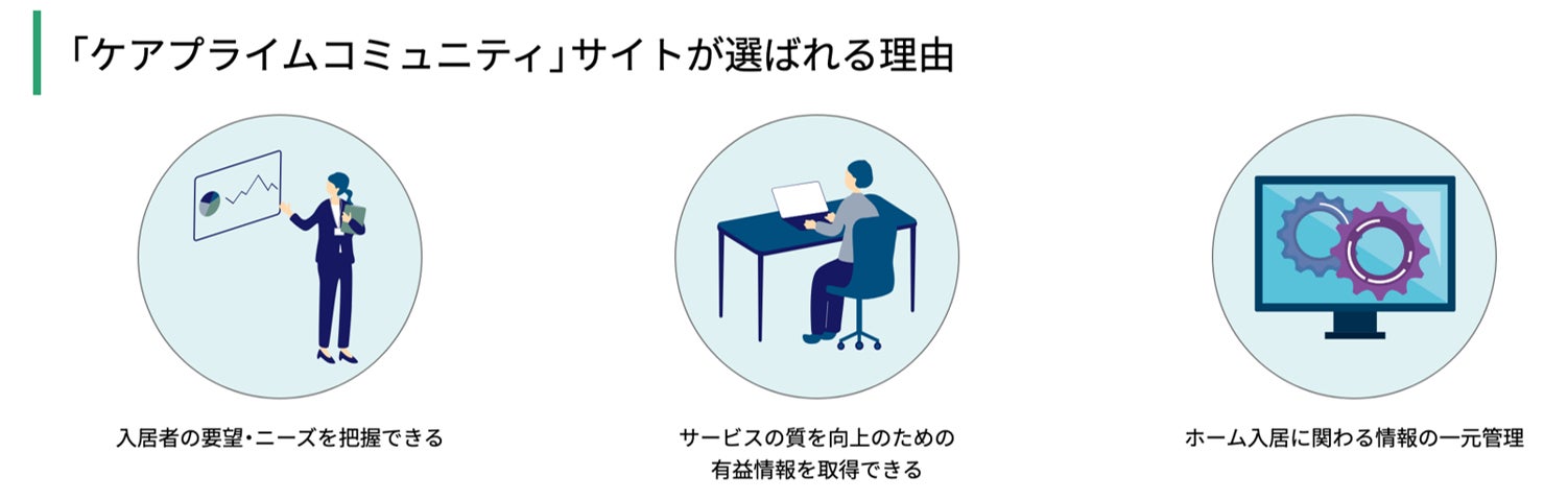 シニアホーム運営事業者との強固なネットワークを活かし、プラットフォームなどでシニアホームの経営・運営に必要な情報の流通を促進。