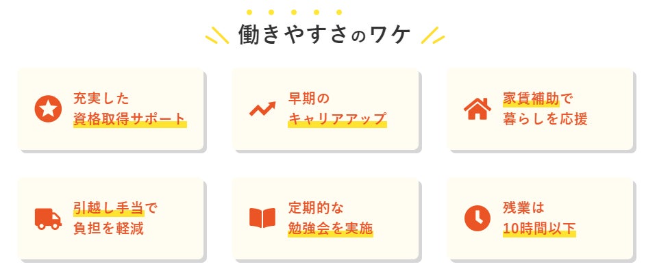 〚高い給与水準〛や〚完全週休2日制〛、〚残業少なめ〛などなど…目指すのは地域でイチバンの待遇!「ここで働いていて良かった!」思わず自分に感謝する充実した日々が、あなたを待っています。