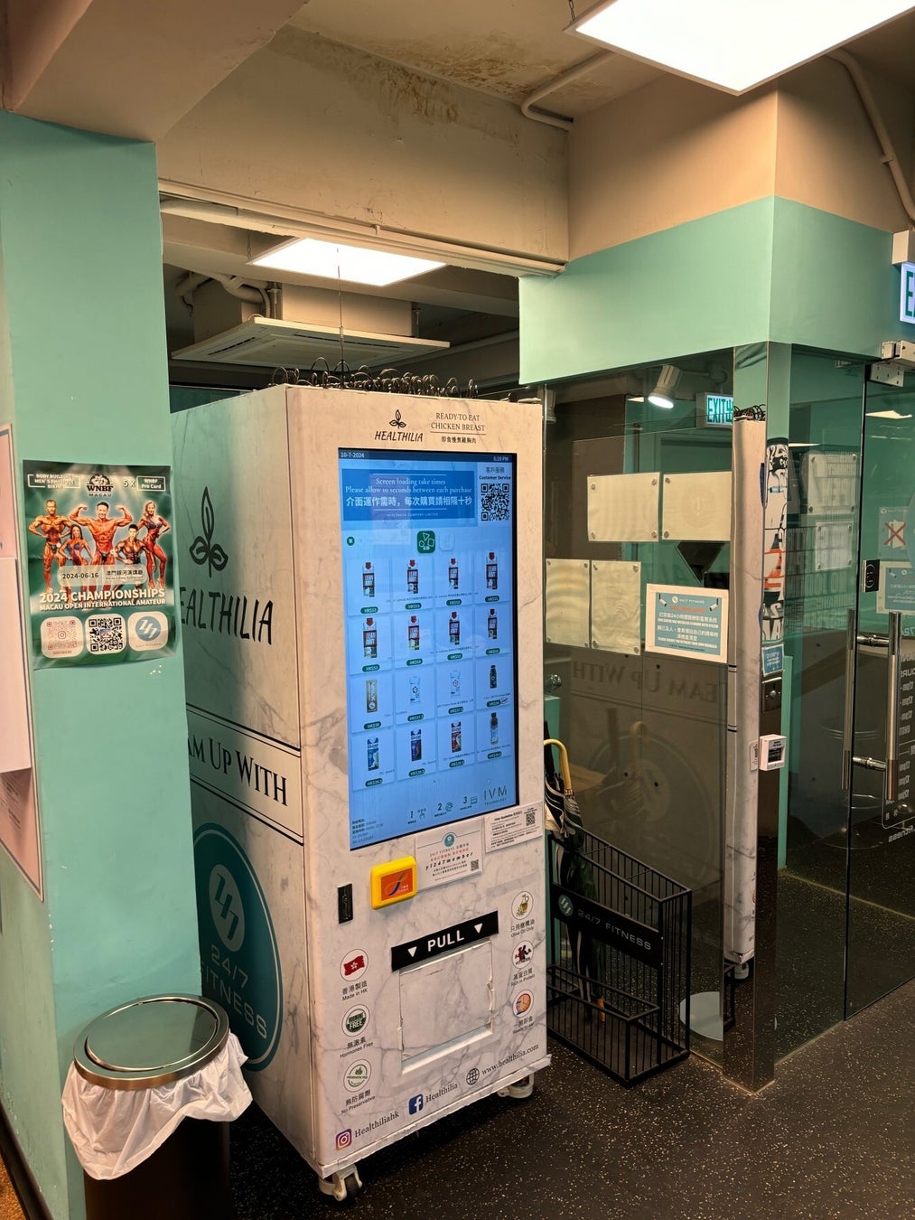 香港内でも多くの店舗を展開しており老若男女問わずジム会員が増加している「24/7 Fitness」を中心に、その他ジムも含め、合計31台の自動販売機に導入されています。