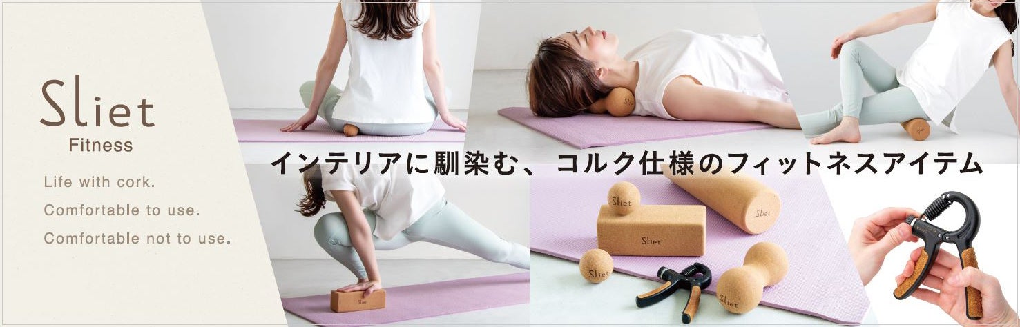 累計販売数50万個の体幹を整えるスリッパ『Sliet(スリエット)』シリーズの新商品展開。インテリアに馴染むフォームローラー、ヨガブロック、ストレッチボール、ハンドグリップ。