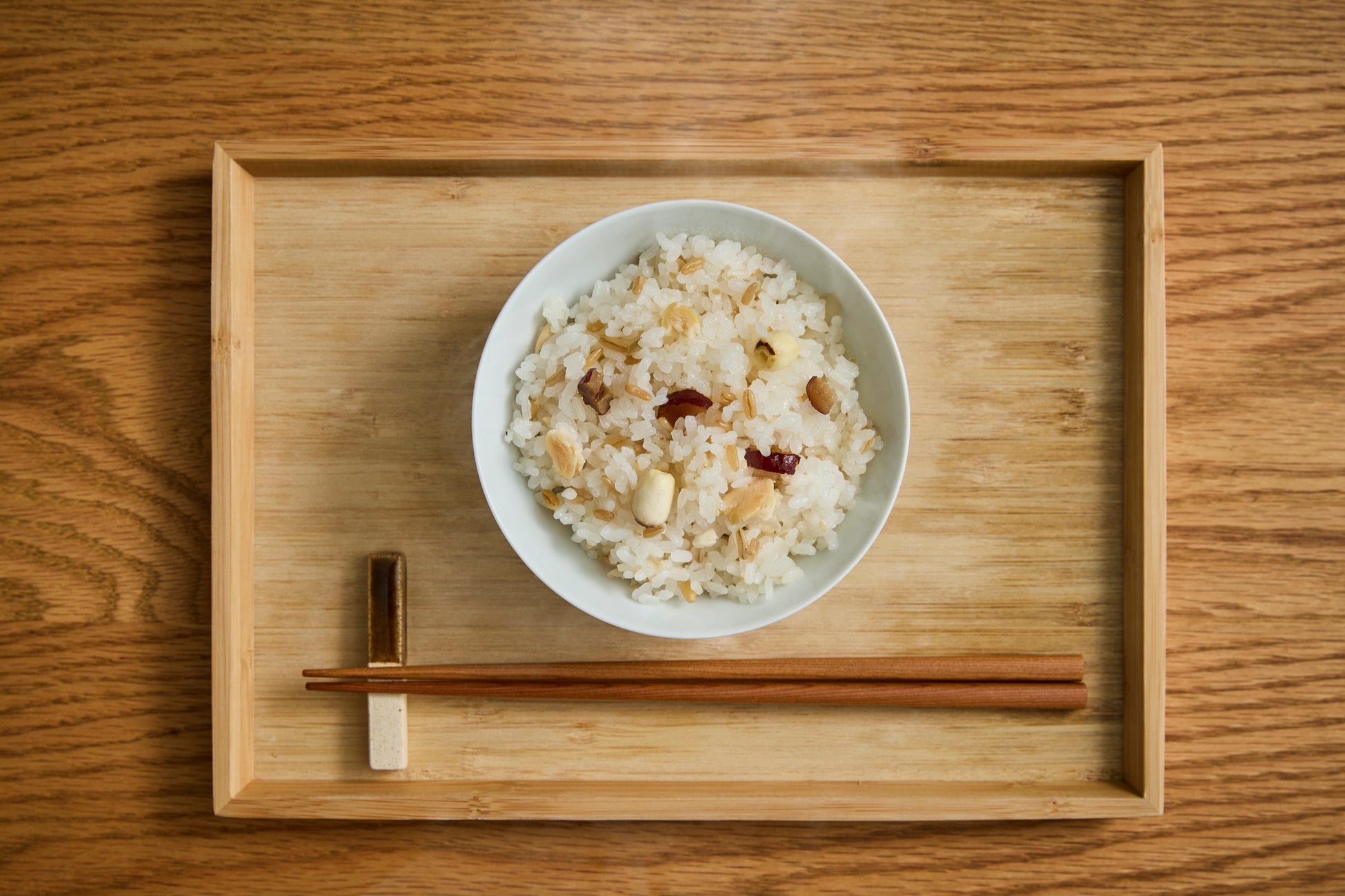 白米では取り除かれてしまう食物繊維とビタミンB1がそのまま含まれる玄米。自社農場で栽培した新潟県産コシヒカリを3種類の磨き度合いの玄米にしてブレンドし、体すっきりと食べやすさの両立を目指しました。さらにキクラゲ・ひじきで食物繊維を強化。