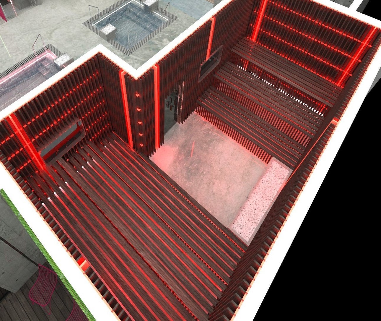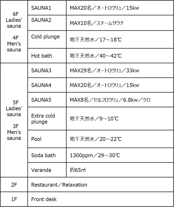 地上6階建て、延床面積2006.61㎡の建物内には、男女それぞれに5つのサウナ、炭酸泉や地下天然水を使用した温度の異なる4つの水風呂と、温かいお風呂の5つの浴槽を設ける他、レストランやリラクゼーションサービスを完備しております。首都圏最大級のシネコン「チネチッタ」や大型ライブホール「クラブチッタ」を中心に、遊び心をくすぐる楽しみいっぱいのテナントが集積し、刺激的なライフスタイルとカルチャーを発信する複合商業施設「ラ チッタデッラ」内に、新しい魅力を備えた都市型サウナが誕生します。
