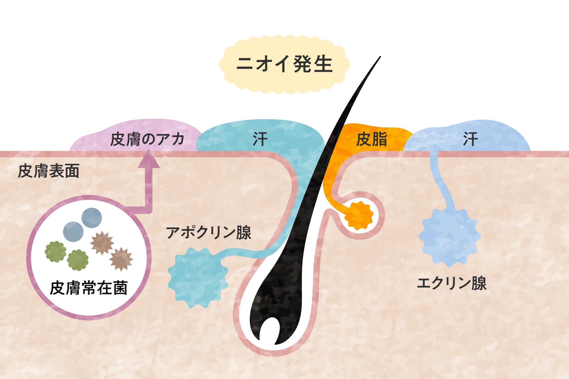 頭皮のニオイは主に皮脂が過剰に分泌され、それをエサにする常在菌が増殖することによって引き起こされます。