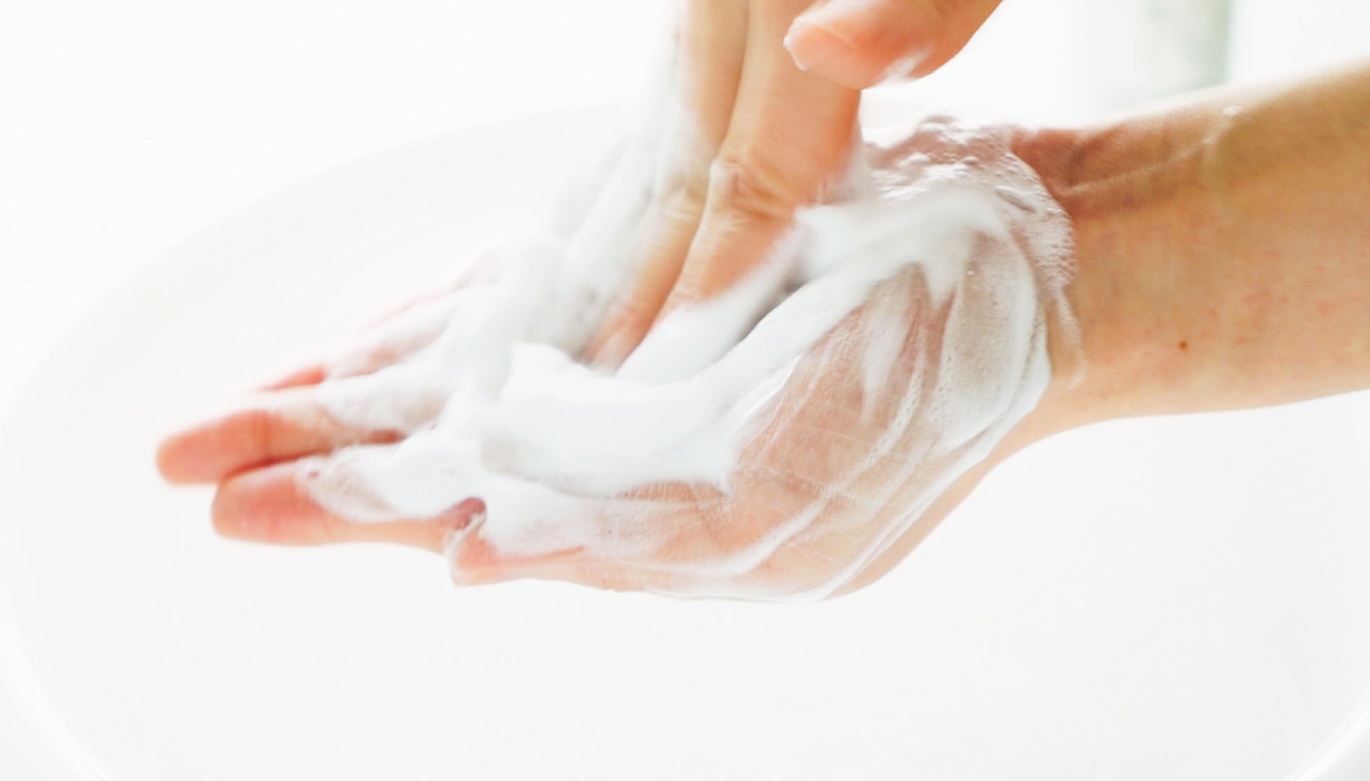 ③目をつぶって、毛穴汚れが気になる箇所から泡を乗せ、その後顔全体を包み込むように洗います。泡の中にある「微つぶ」※2を感じるようクルクルするのもオススメです。