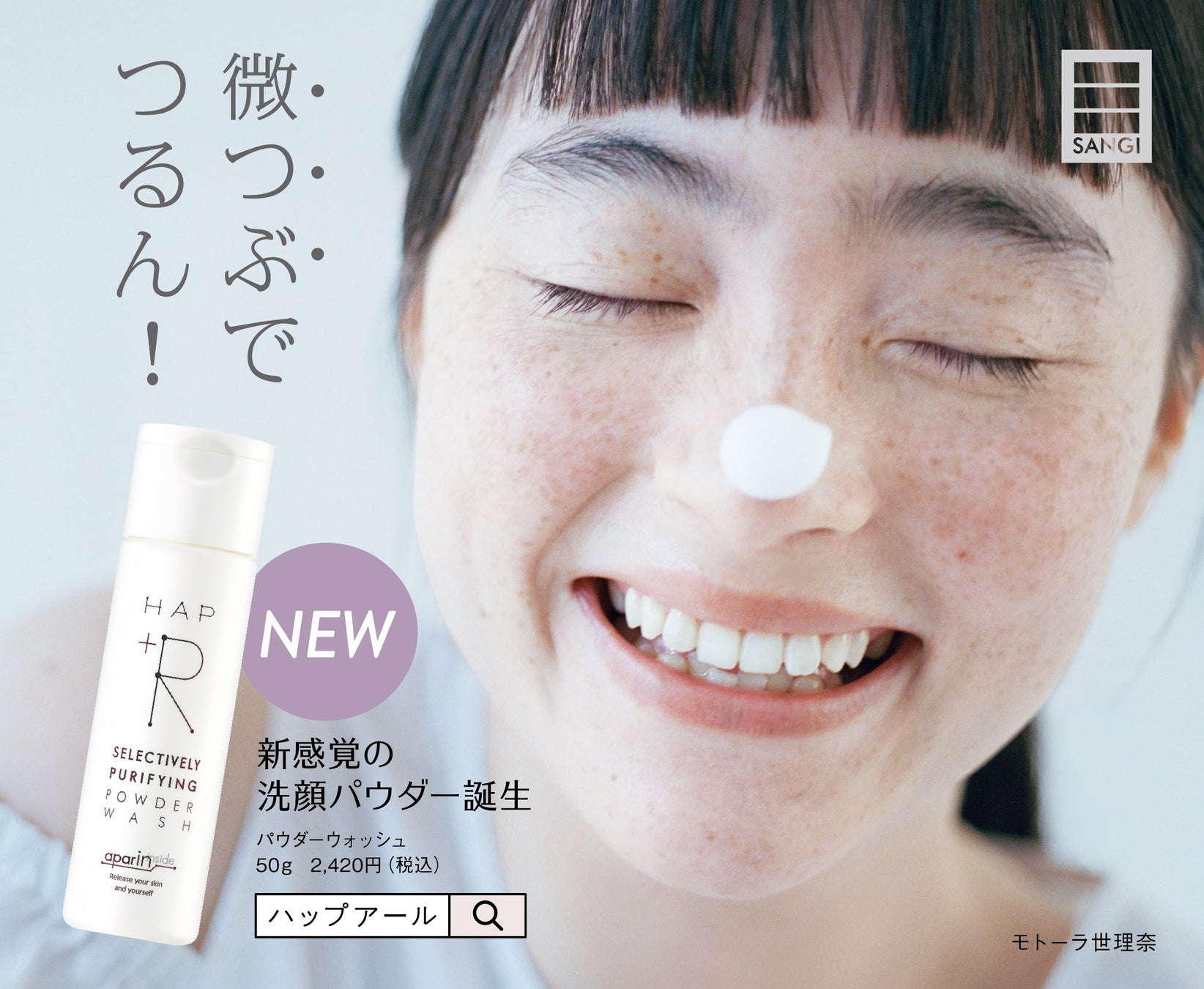 美白高機能歯みがき剤※1 「アパガード」の開発・発売元である株式会社サンギは、スキンケアブランド「HAP+R(ハップアール)」より、 「ハップアール パウダーウォッシュ」(50g/2,420円)を新発売いたします。パウダーウォッシュは、スキンケア用アパタイト「アパリンⓇ」 ※2と2種類の酵素(パパイン、リパーゼ:洗浄成分)を配合し、毛穴汚れにアプローチする洗顔パウダーです。
