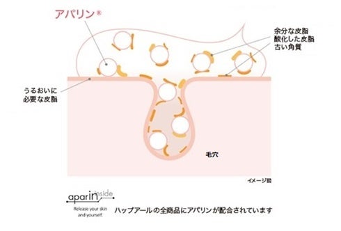 洗浄補助成分としての高い機能を持つアパリンを取り入れた洗顔料は、毛穴汚れや肌のダメージを引き起こすとされる3つの要因(①余分な皮脂、②酸化した皮脂、③古い角質)を選択的に吸着・除去。