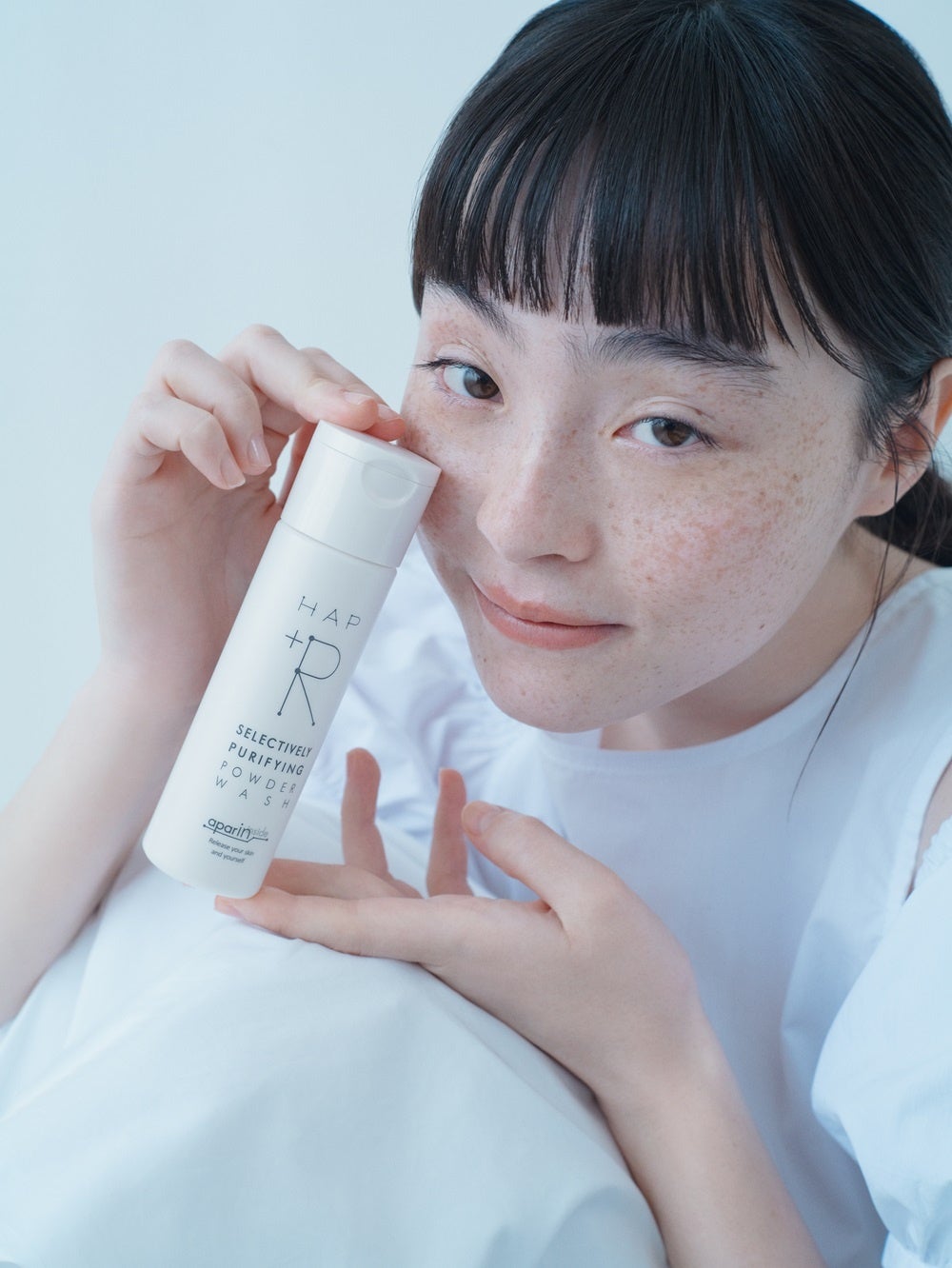 製品のキービジュアルやムービーにはブランドのイメージキャラクターであるモトーラ世理奈さんを起用。洗顔後の心地よさ、つるんと透明感のある素肌を表現いただきました。「ハップアール パウダーウォッシュ」を通じて、多くの方に洗顔をする時間、すっぴんで過ごす時間をもっと楽しんでいただけたらと願っています。