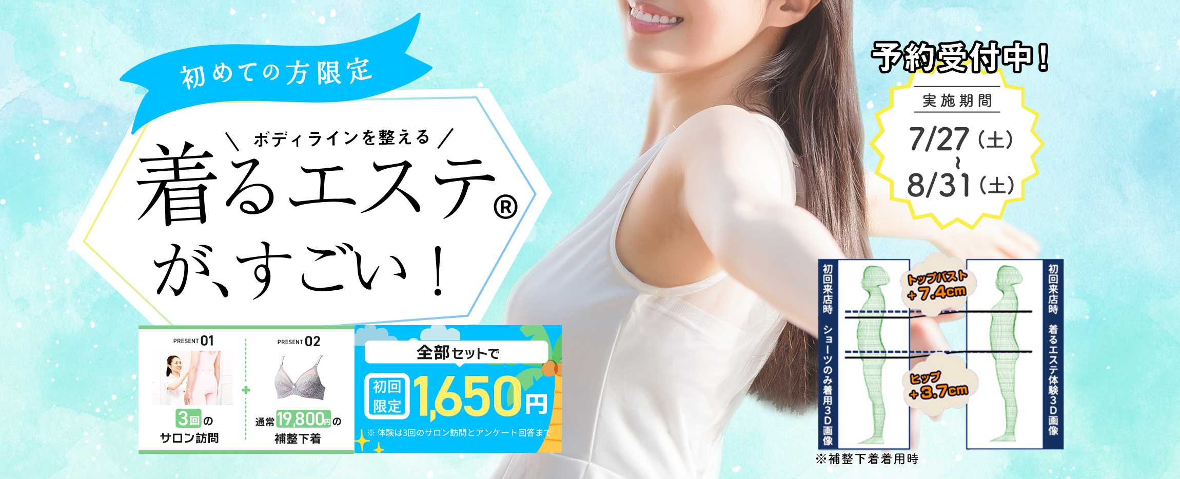 ダイアナ独自の豊富な経験と実績、科学的データを基に、お客様一人ひとりのお悩みに合わせた継続的なカウンセリングとアフターフォローで理想のプロポーションづくりをサポートしています。今回の「着るエステ®体験」では、お客様のお悩みに合わせて8つのコースからお好きなコースをお選びいただけます。プロのカウンセラーからアドバイスを受けながら、お好きな商品をじっくり5日間お試しください。お試し後の来店時に、体験前後の比較を行い、その変化をご自身の目で確認・実感することができます。
