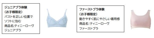 お子様は「ジュニアブラ体験」または「ファーストブラ体験」どちらかをお選びいただき親娘でご一緒に体験していただきます。