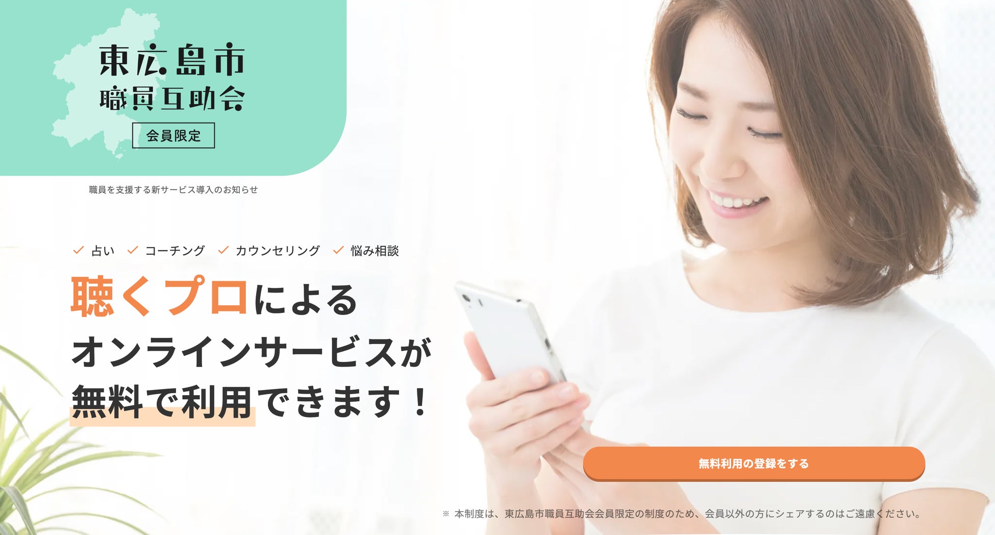 このような背景から、東広島市職員互助会は、市民に寄り添う職員のウェルビーイングとヘルスケアのために、2024年7月より、いつでも気軽に多様なプロの聴き手に話を聴いてもらえる(相談もできる)オンラインサービスLivelyTalkの利用を支援することを決定しました。この導入により、職員の働きやすい環境を提供することを目指しています。