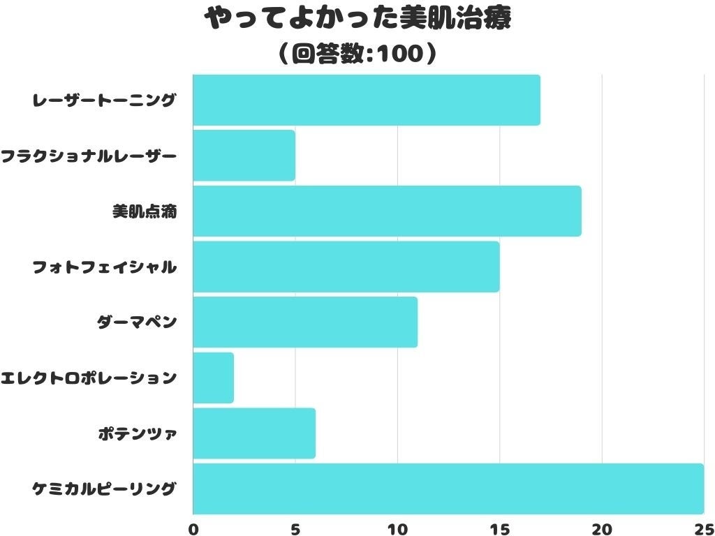 やってよかった美肌治療をアンケートにて調査したところ、1位は「ケミカルピーリング」でした。