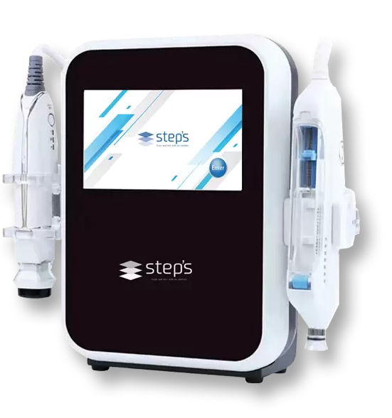 「Step’sプログラム」がメインメニューとしても高単価施術も行えますので、エアーニードルマシン『Step’s』はこれからのサロンに喜ばれるメニュー作りを行うこうとが出来ます。RF機能で2役in1台で大変便利です。