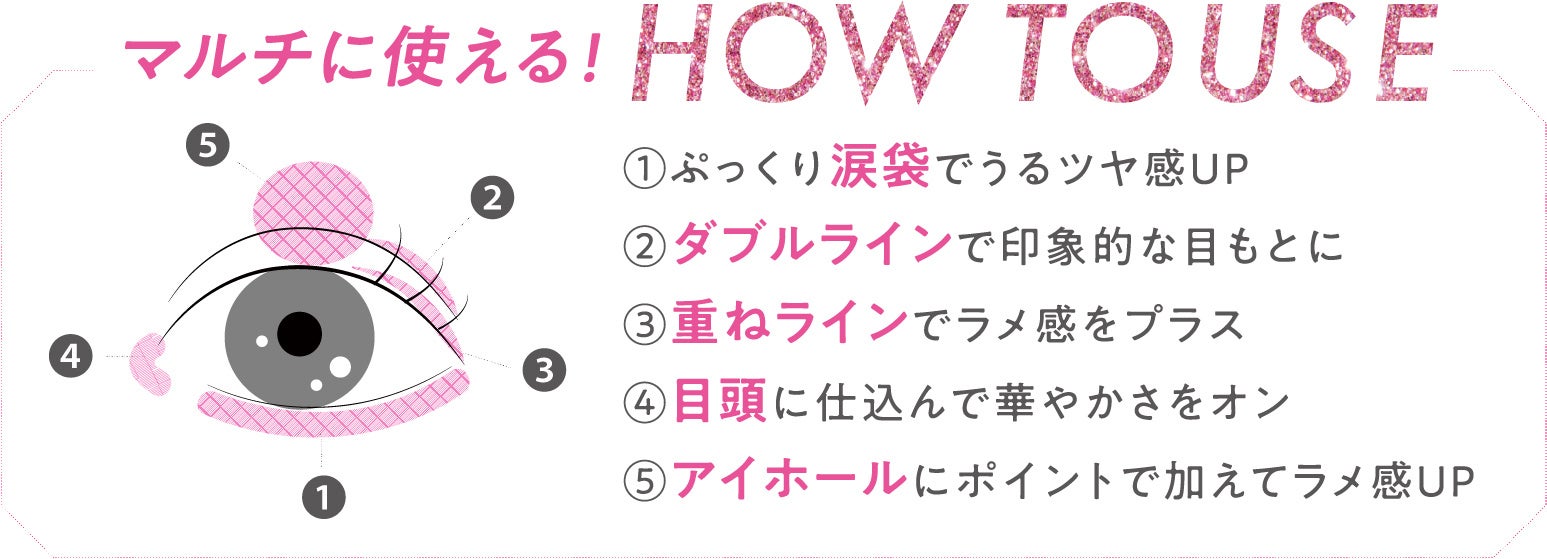 涙袋やポイントハイライトなど、ラメを足したい部分にもおすすめです。