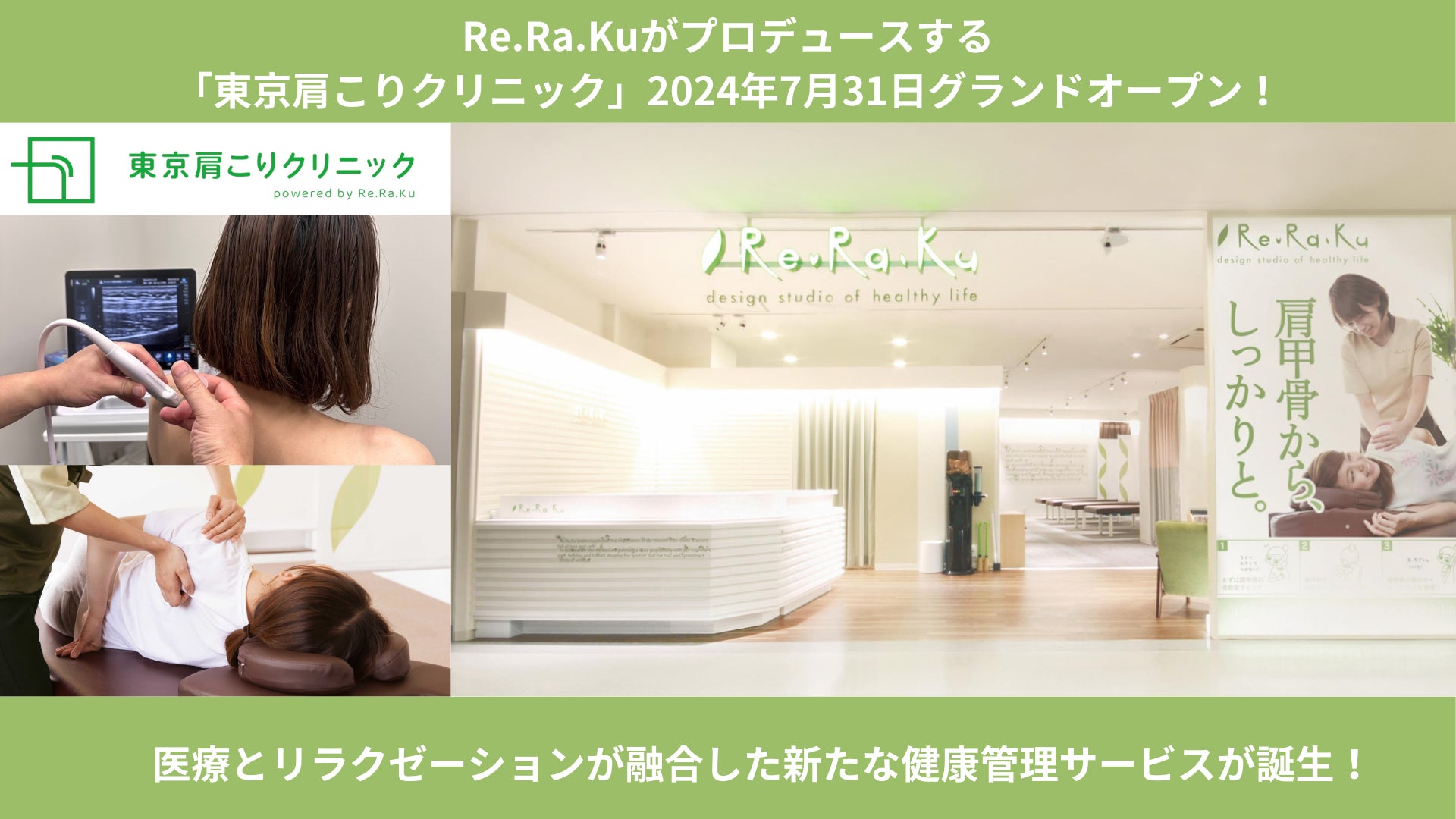【Re.Ra.Ku(リラク)が共同開発】肩こり治療に特化した「東京肩こりクリニック」が7月31日にグランドオープン!