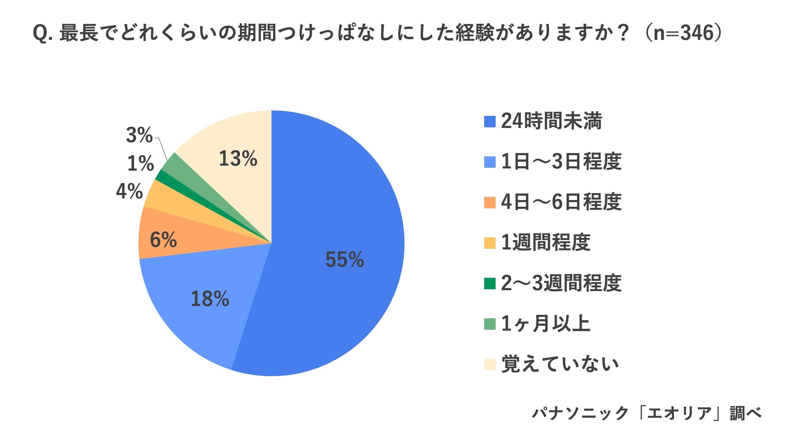 ・実際に切り忘れた期間は、「24時間未満」55%、「1日〜3日程度」18%