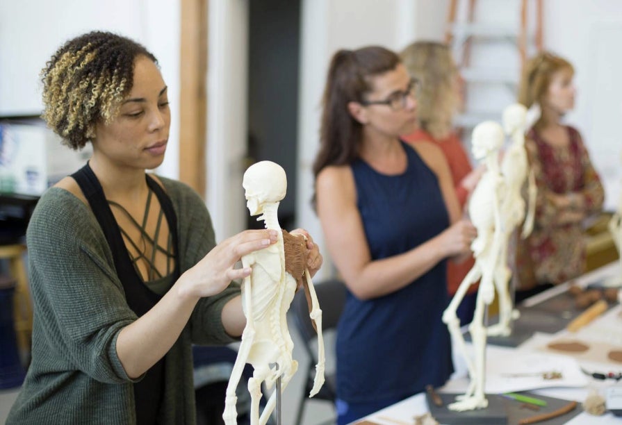 ●Point1:体験型で楽しく解剖学の理解を深める(特別にデザインされたスケルトンに、粘土で体を内側から作り上げていきます。)