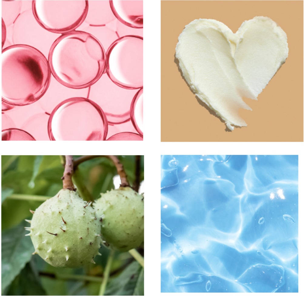 *1 ハリ・ツヤ成分 パルミチン酸レチノール *2 エモリエント成分 カカオ脂、シア脂、アストロカリウムムルムル種子脂  *3 整肌成分 セイヨウトチノキ種子エキス *4 保湿成分 加水分解コラーゲン *5 保湿成分 ヒアルロン酸Na ※1 角質層 ※2 年齢に応じたケアのこと