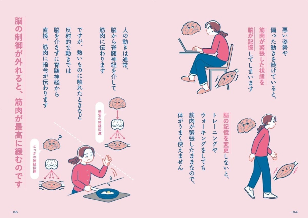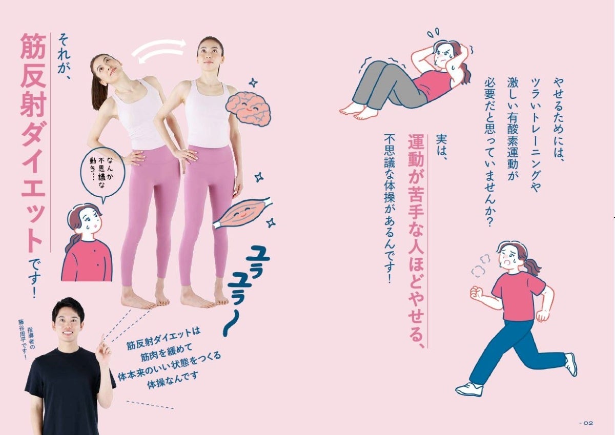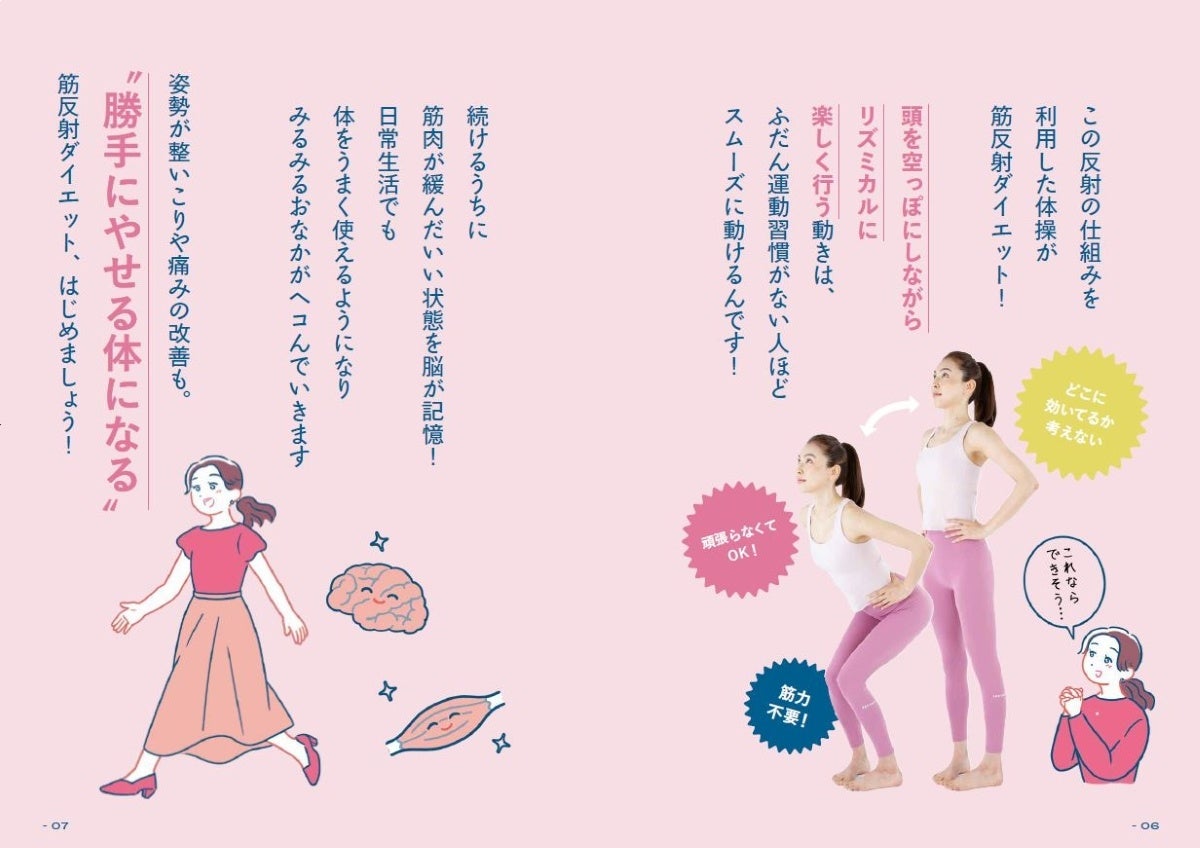 「筋反射ダイエット」ではこの理論をもとに、「沈んだ反応で起き上がる」「縮んだ反応で自然に伸びる」といった、反射に近い動きを取り入れています。
