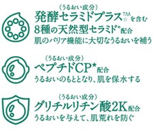▶ 「セラミドバリアケアⓇ※2」:8種の天然型セラミド*(うるおい成分)を配合。