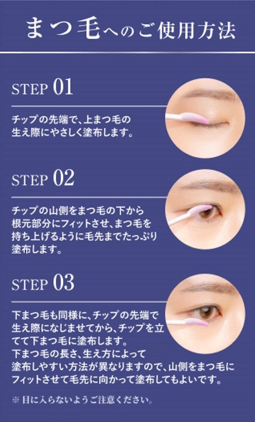 iPS細胞の培養上清液は、肌や毛の新陳代謝に必要不可欠な栄養である成長因子やエクソソームを豊富に含み、肌が持つ本来の力をサポートします。まつ毛だけではなく目元にもしっかりと塗布していただくことで、うるおって透明感※8ある目元と、1本1本しっかりとした健康的なまつ毛へ導きます。さらに、乾燥小じわを目立ちにくくする「リフトニン-エクスプレス※9」や、まつ毛にハリ・コシ・ツヤを与えるケア成分を5種配合し、目元・まつ毛のケアを1本で叶えます。また、色素沈着成分不使用で、色素沈着が起こりにくい設計※10となっております。