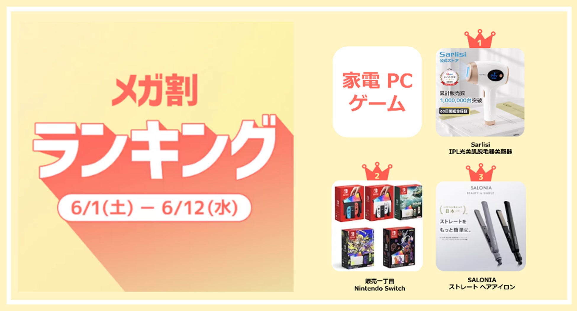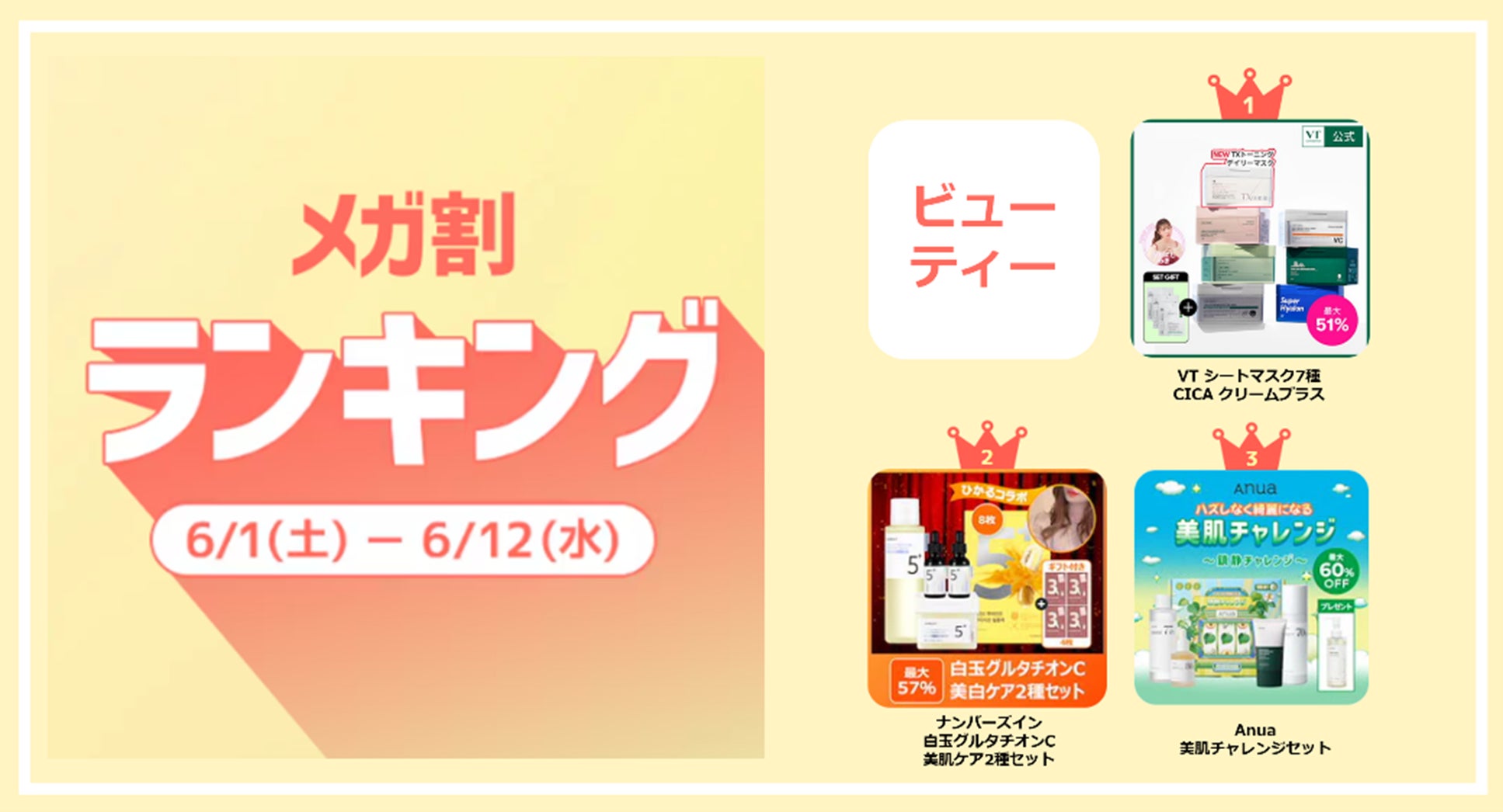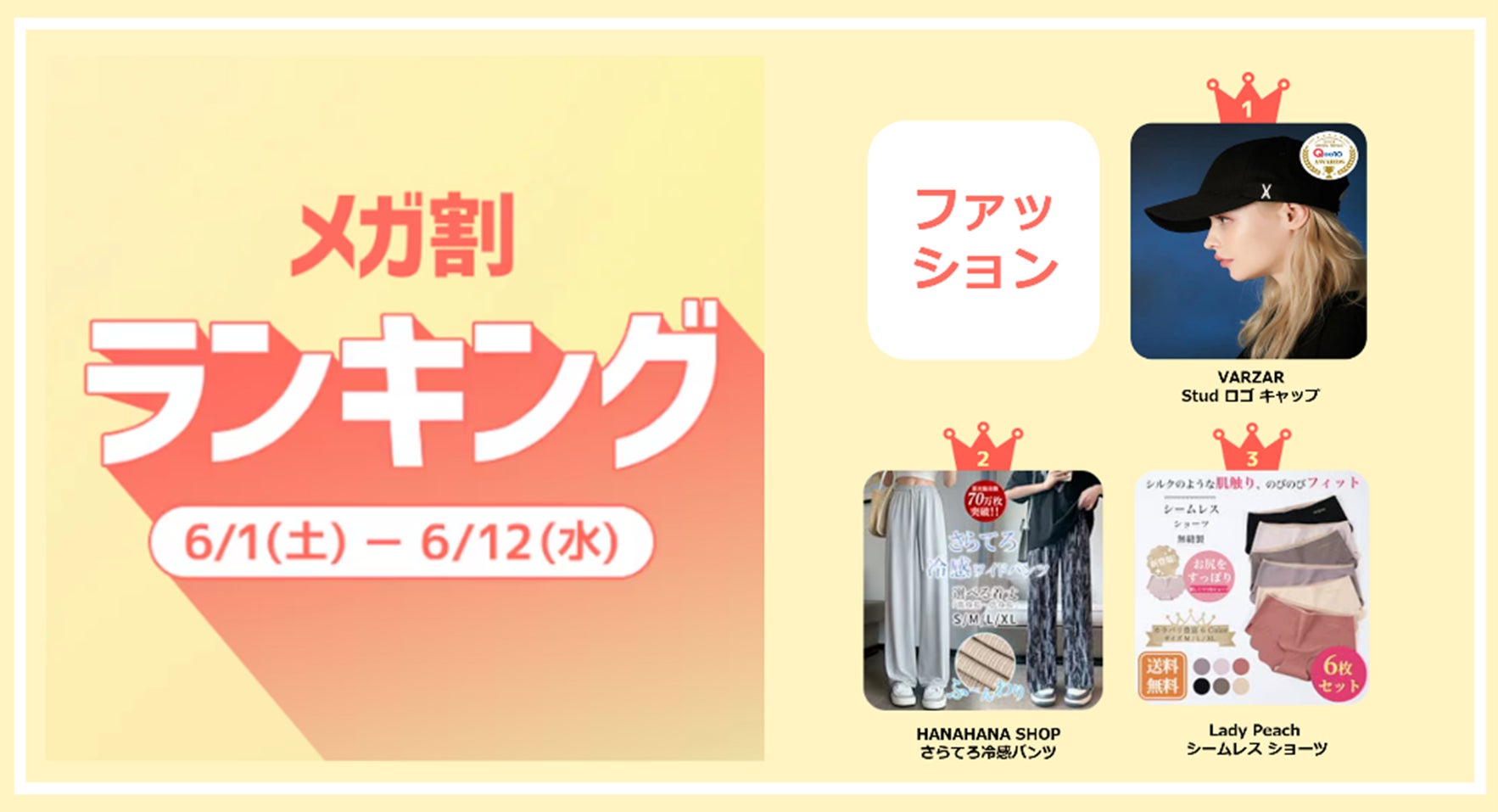 ■メガ割ランキング(期間:2024年6月1日~6月12日)