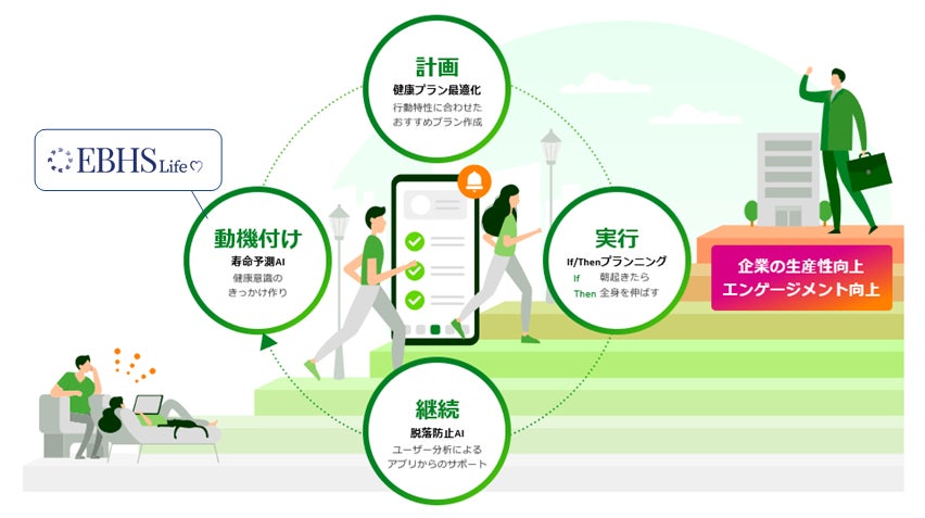 ■ 個人の動機付けと企業の健康経営を包括的にサポートする「EBHS Life」
