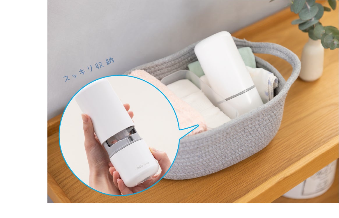 皆様にご愛好いただいておりました『ママ鼻水トッテ 電動鼻すい器』は、『ハンドポンプ 鼻すい器』の発売に合わせてブランドリニューアル。よりお客様に親しみを抱いていただけるよう『Sotto Totte(ソットトッテ)』にブランド名を変更しました。リニューアルに合わせて静音性能をアップし、従来品よりもさらに静かな音を実現しました。おしゃれな生活空間になじむスタイリッシュなデザインや、フタ付きで衛生的に保管できることも大好評。