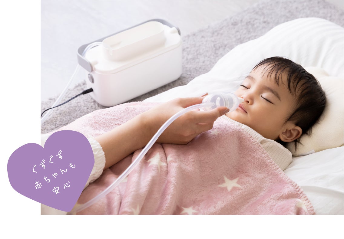 赤ちゃんが嫌がる大きな音がしないので、こっそり吸引できます。真空ポンプのパワフルな吸引力を実現し、奥の鼻水までしっかり吸引できます。