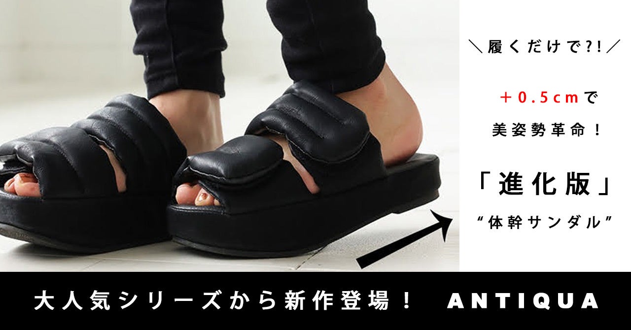 ANTIQUAの大人気シリーズ「トレーニングサンダル」から、待望の新作が登場しました。美しい姿勢を実現するこのサンダルは、履くだけで体幹を鍛えることができるだけでなく、スタイリッシュなデザインでお洒落にも貢献します。